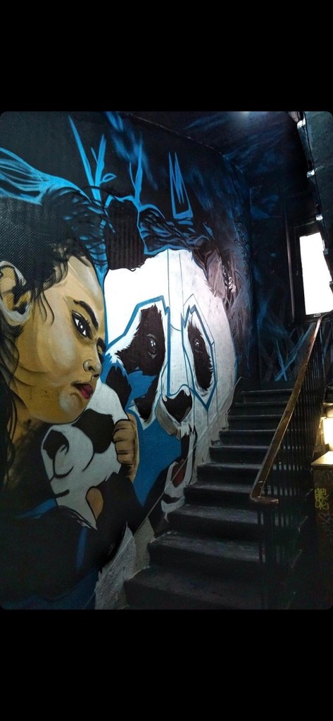 It was not easy to integrate this fresco into the building, because necessarily, painting on the stairs is not easy. But that was the whole challenge, and that’s why I made a big panda that takes a good part of the stairs, I admit it (laughs)