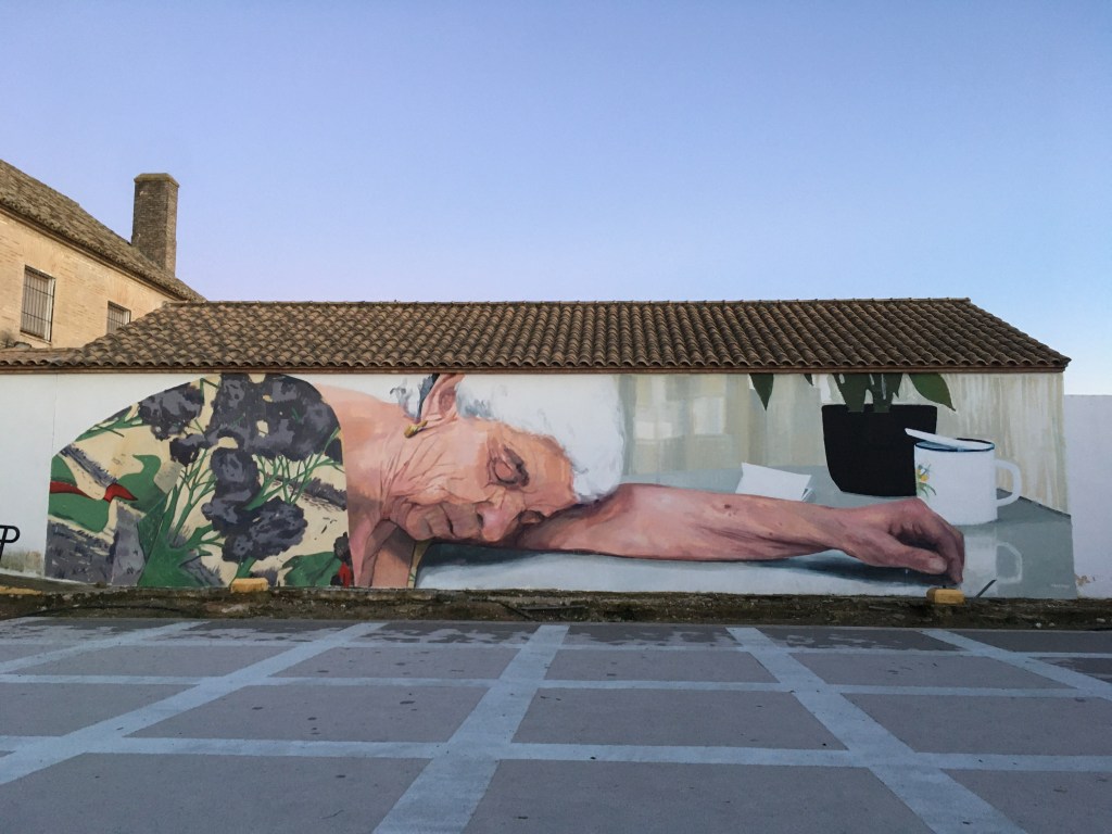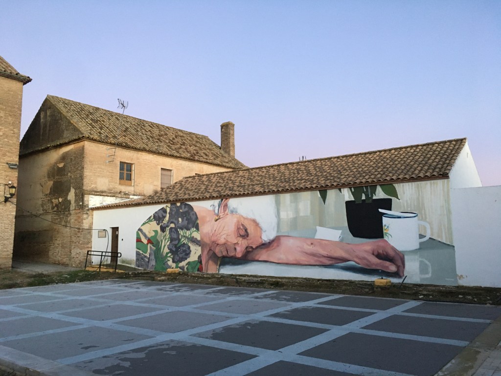 With my mural work I have 2 ways and projects: the project “Perdidas en un cortijo andaluz” and the public mural. The first one has a limited life, as it is painted on buildings that are sinking. The estimated life span is between 1 day and 5 years.