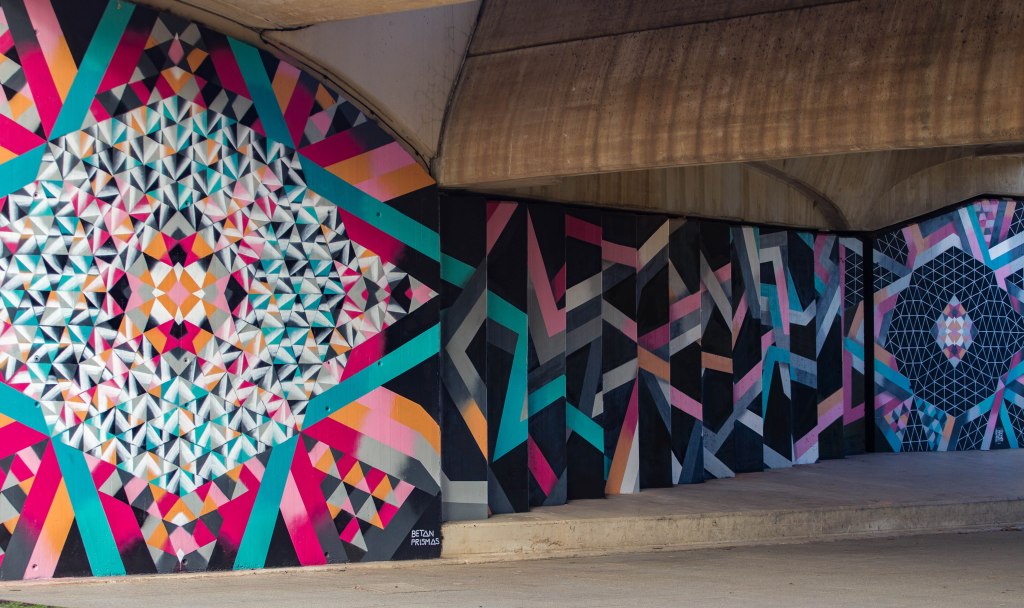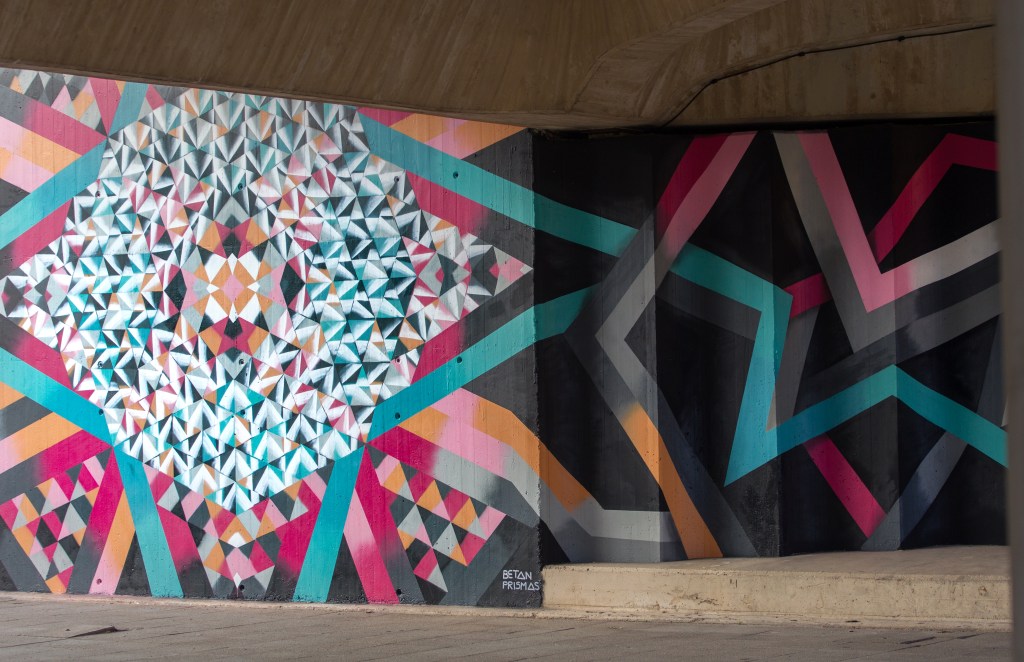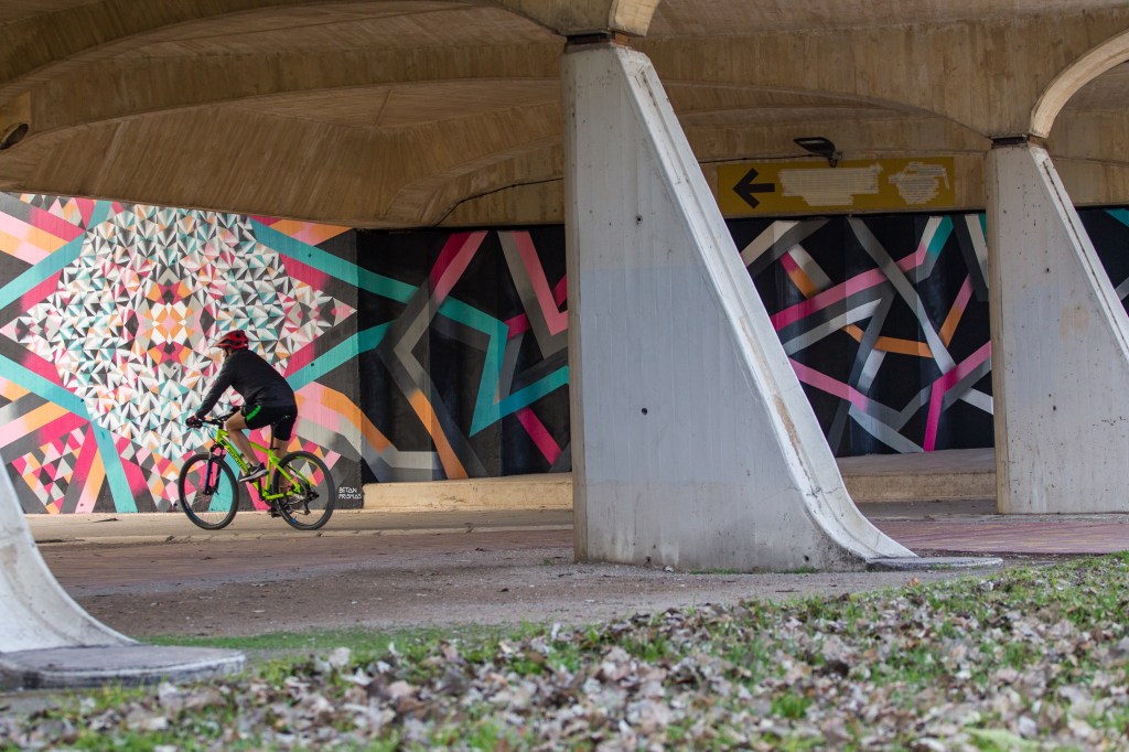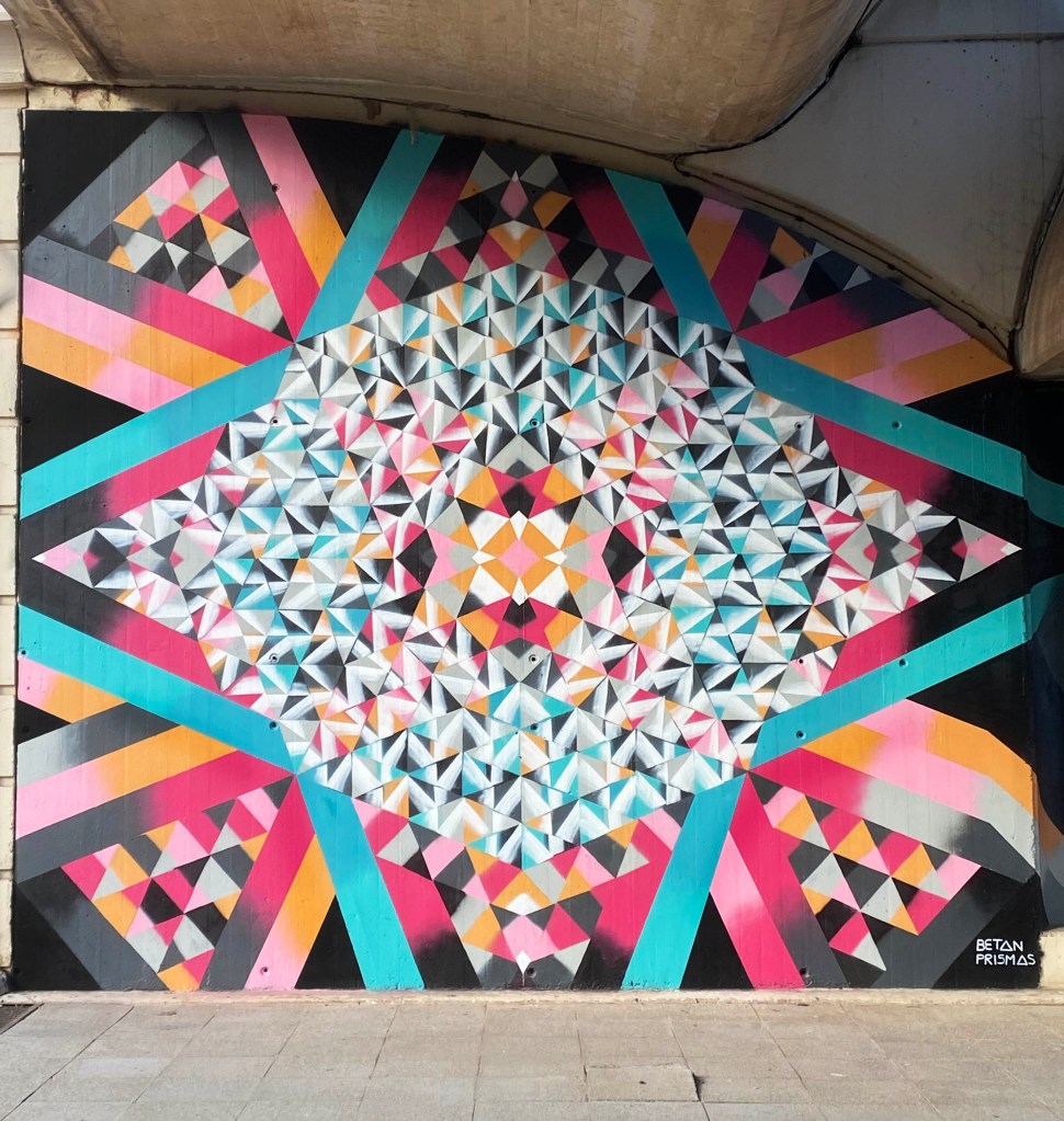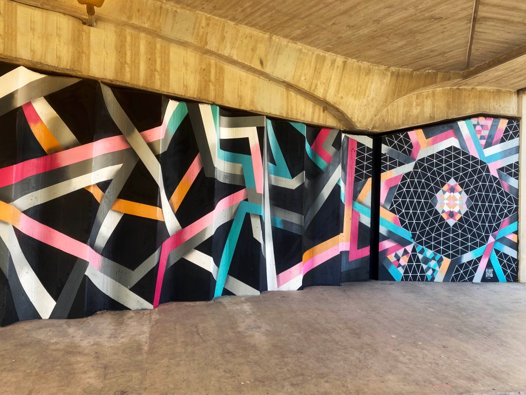 Under the bridge October 9 of Turiá Garden, on the wall just below the architect Calatraba made his first bridge in the city of Valencia, it was a space where no one went or sat, people passed by and did not stop; until that anonymous, empty and gray space now has life, color, and generates other points of view, gives a new context. People passed by and did not stop; Now it has not only become an artistic space but it has also allowed people to be in it, sit, rest, meet up with, contemplate, and has generated an environment and background for photographs and videos in this media world.