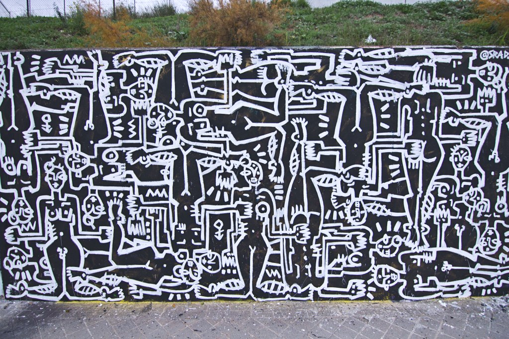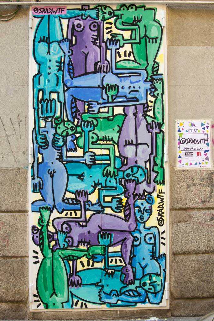 My creative process in general is very instinctive, I don’t usually prepare sketches, I like to create a fun and free atmosphere and from the sensations they produce in me I build the different characters. In the case of murals it depends on the composition you choose. I like to create networks of linked bodies, I call it Tetris, and in that case there is no sketch and the work is always the same and always different. It starts with a body and everything else flows on its own without previous diagrams creating an infinite puzzle. If it is a composition of people, I make a schematic to build it and get an idea in space.
